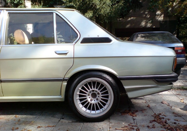 - Bodywork: New windshield. “Kamei” front spoiler, taken down for repair after some snow-ploughing during the winter. Spoiler for the rear bumper and side skirts. E12 525 ’79 side front radiator grilles with chrome stripes.