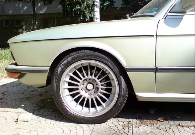 - Wheels and tires: Original “Alpina” light alloy wheels: front – 8.5Jx17H2 et14 with 235/45/17 Michelin Pilot Sport and rear – 10Jx17H2 et28 with 265/40/17 Michelin Pilot Sport. The rear wheels have additional 9 mm flanges. I have also 9.5Jx17H2 et24 wheels, which can be installed without flanges. I mean that in both cases (front and rear), to avoid rubbing, the inside edges of the fenders are bended tightly to the fender walls.