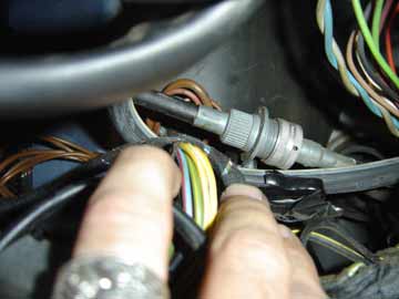 unit Instrument panel Once you get the retaining cable and speedometer cable unhooked, the instrument panel will come out. Be very careful, your panel is fragile. Don't force anything. If it isn't coming out easily, chances are the retaining cable got hooked on a wire. Reach under and guide the cable past the wires while you remove the panel. Retaining cable hookup (turn to release and unhook) Disconnect speedometer cable hookup (hangs down in