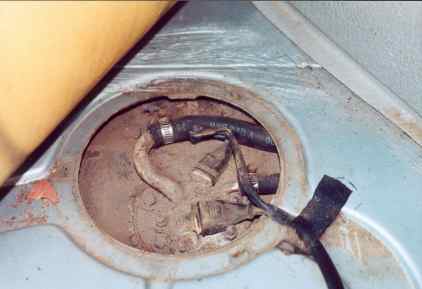 I'd like to share some addtions though that I found made the most difficult part a lot easier. The part I'm refering to is where the two hoses go from the top of the gas tank (accessed through the port in the trunk) down to the assembly behind the right rear wheel.