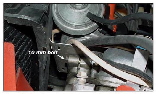 Use a 10mm wrench to loosen the distributor clamp fixing bolt. The clamp should be loose enough to allow you to grab the cap with both hands and rotate it clockwise and counter-clockwise, but snug enough to hold its position when released.