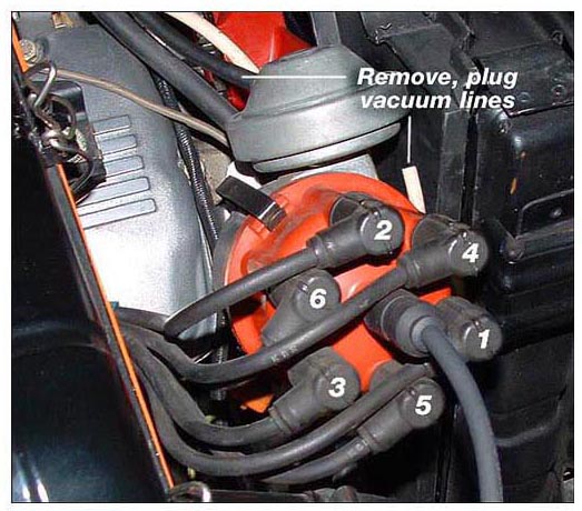 Remove the vacuum line(s) that connect to the distributor and plug them.